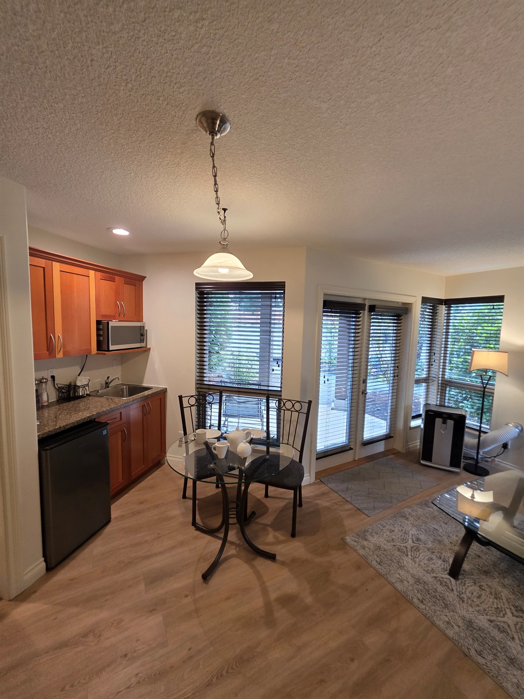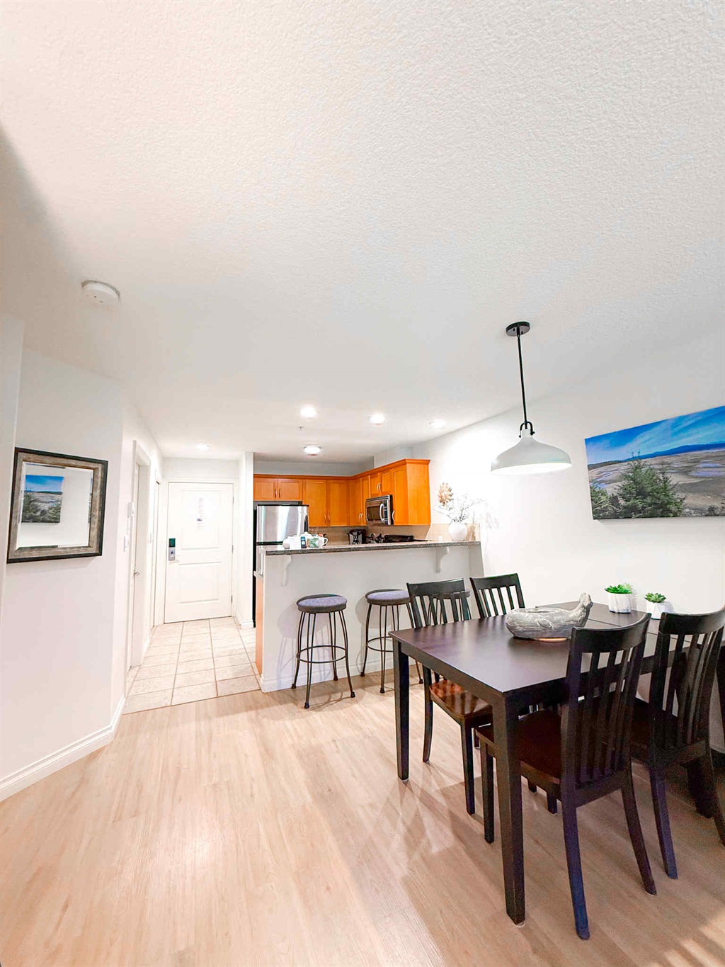 Dining area for six plus bar seating.