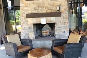 Living area with Natural Gas Fireplace and streaming TV.